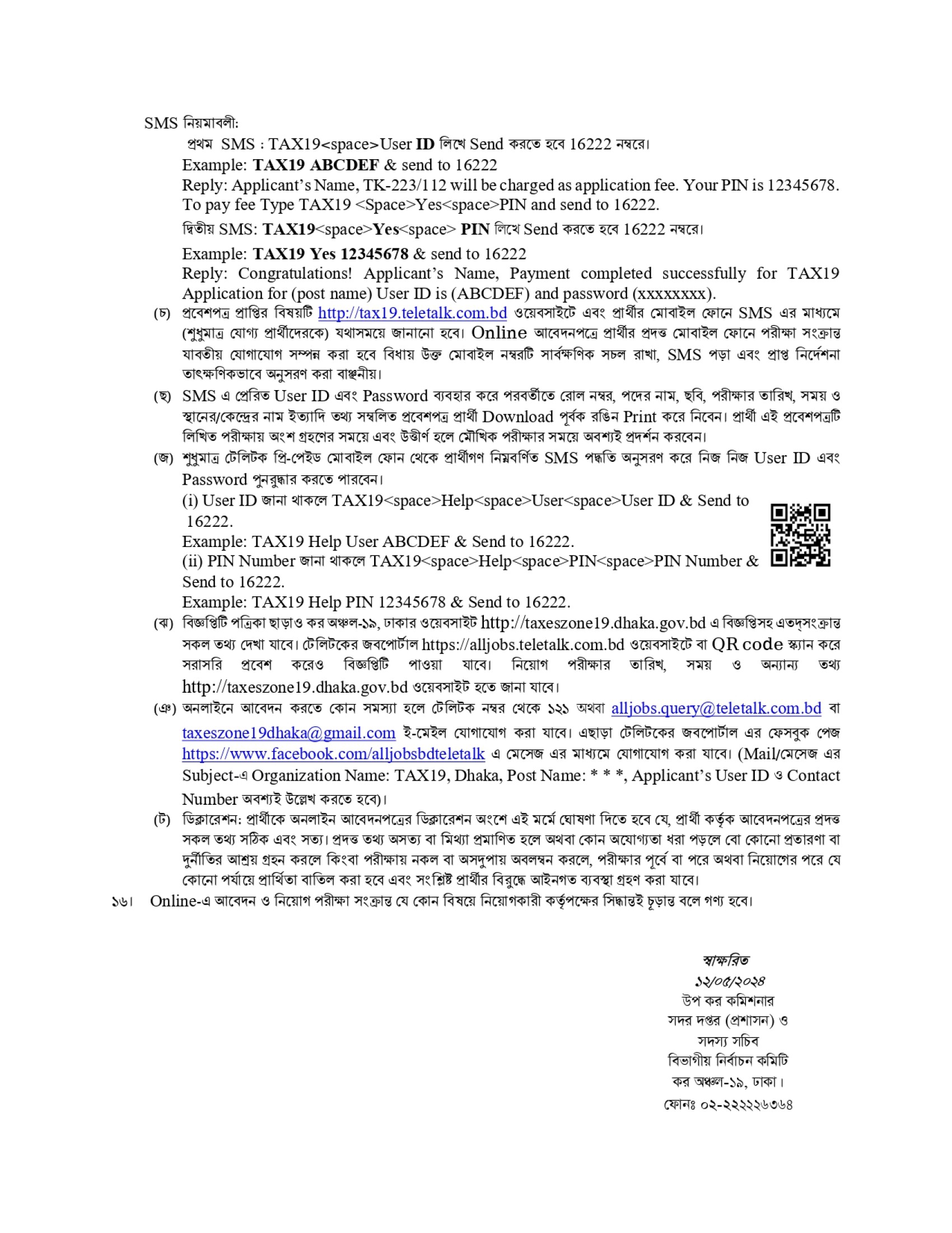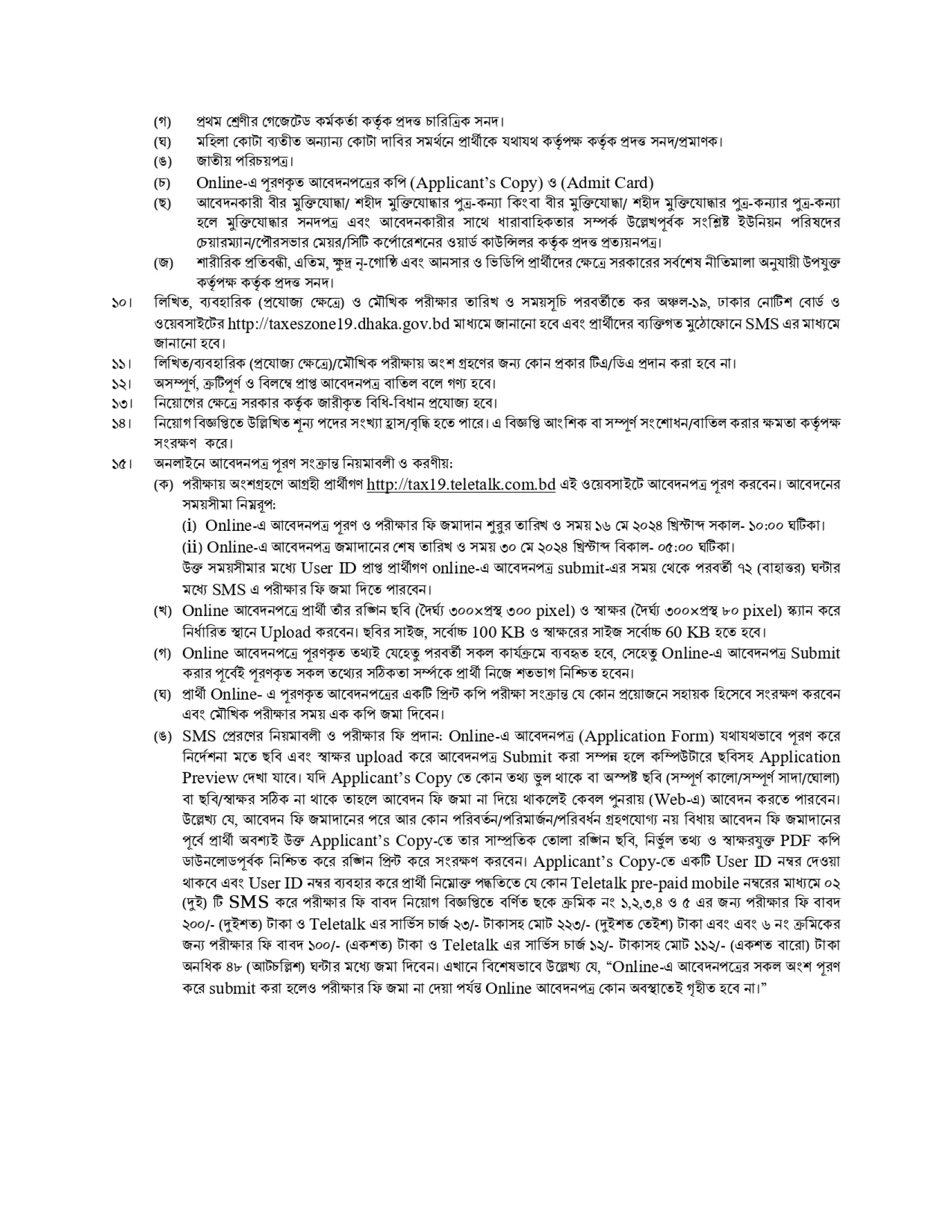 আবেদন প্রক্রিয়া: আগ্রহী প্রার্থীরা অনলাইনে http://tax19.teletalk.com.bd এই ওয়েবসাইটে গিয়ে আবেদনপত্র পূরণ করতে পারবেন।