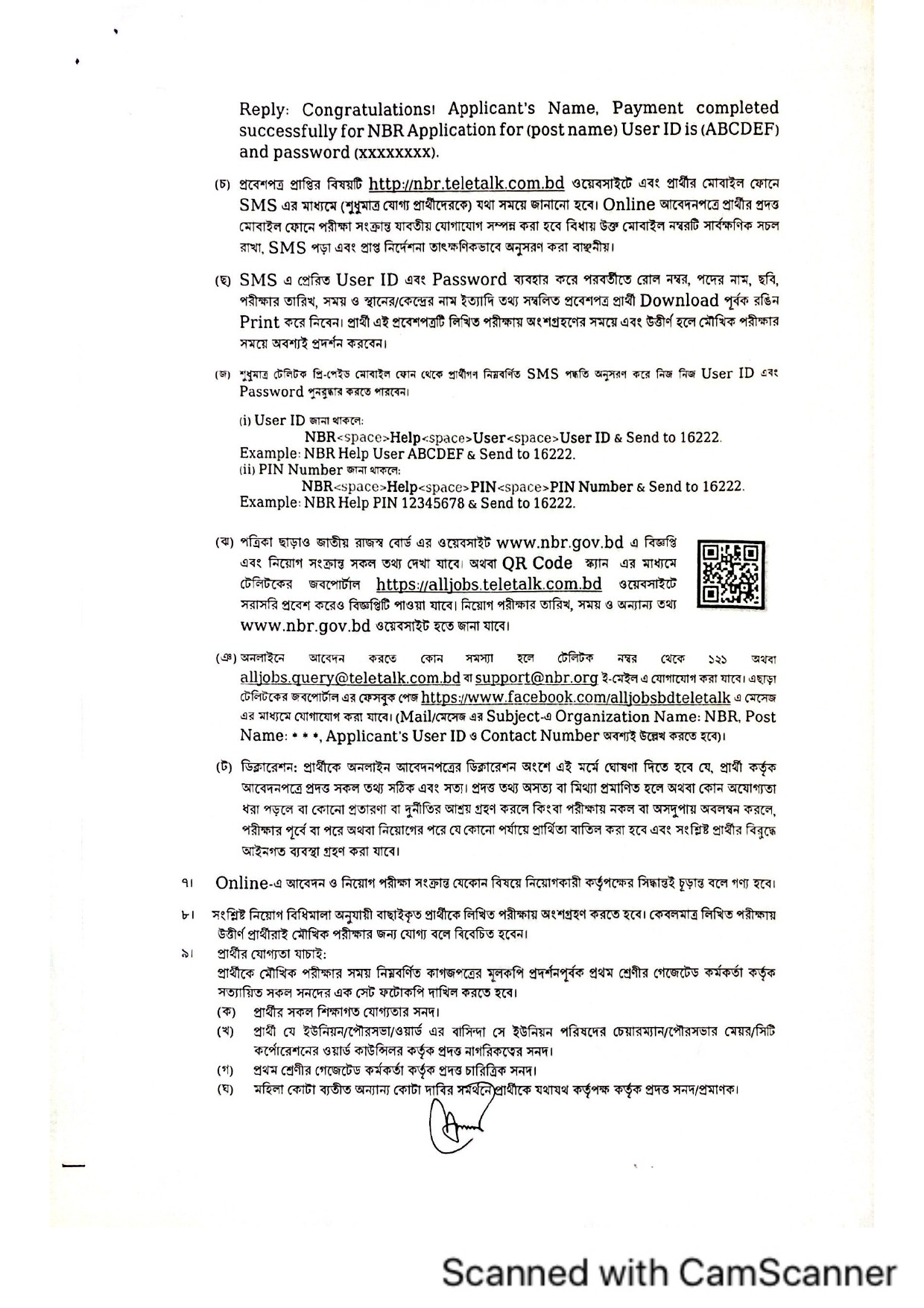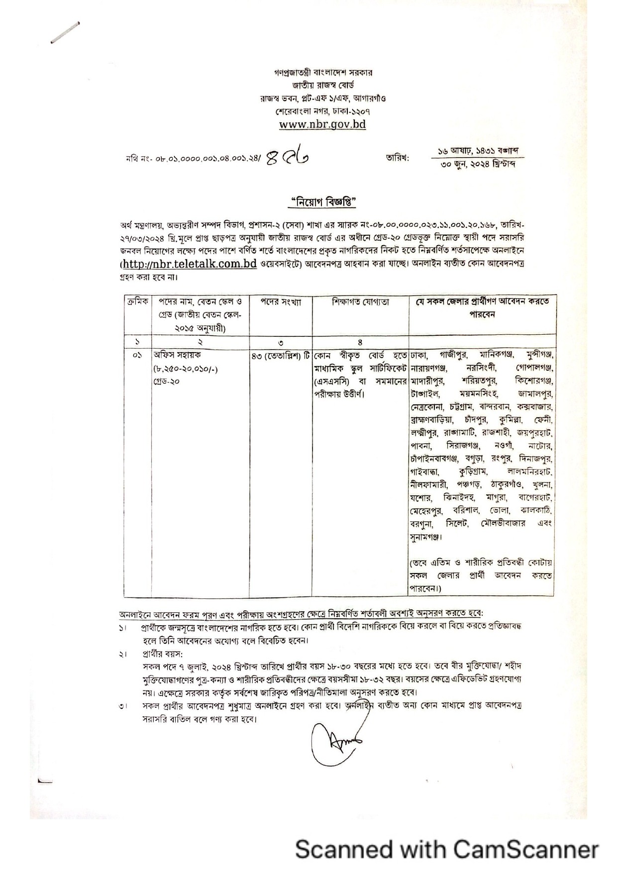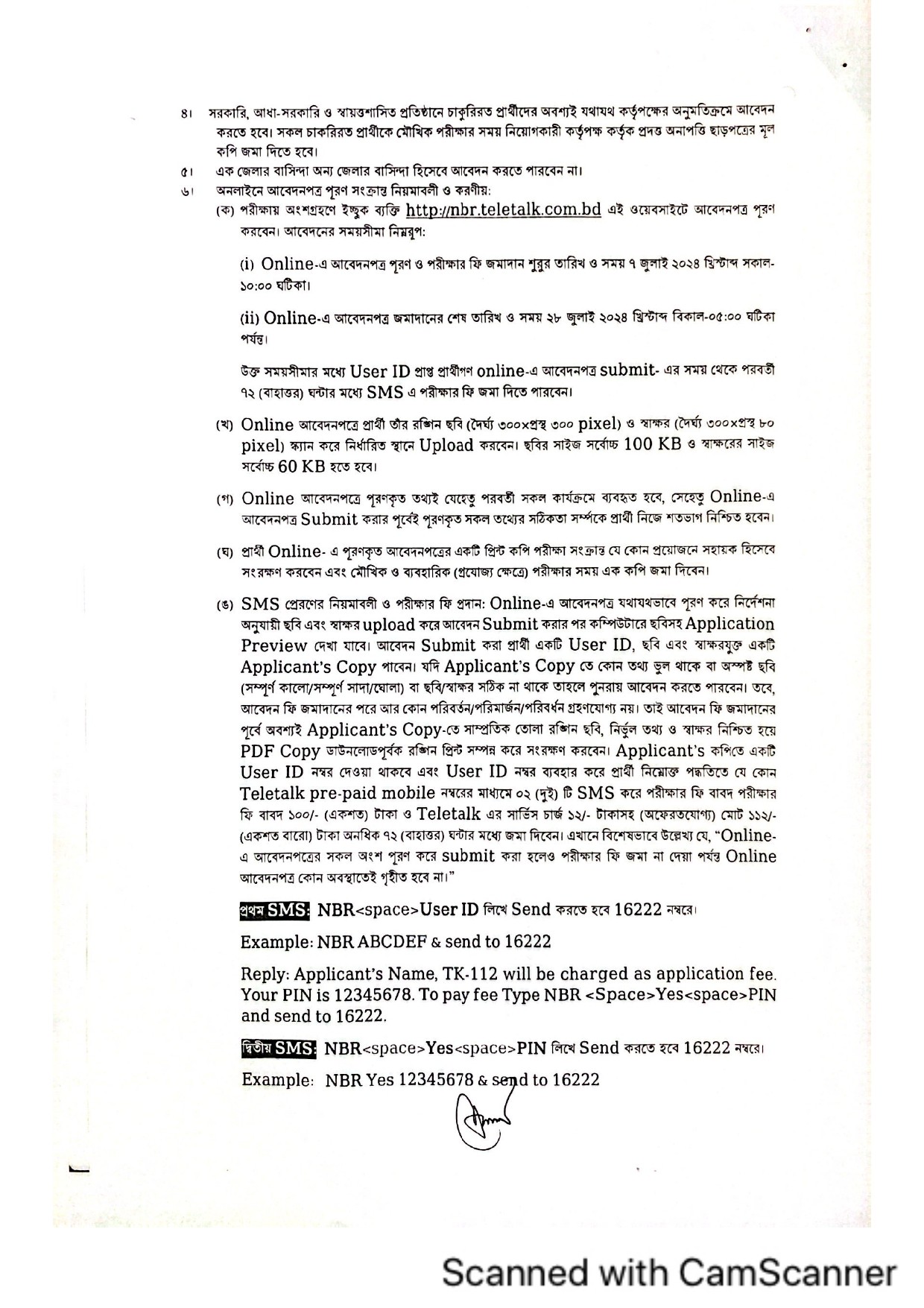 আবেদন প্রক্রিয়াঃ আগ্রহী প্রার্থীরা অনলাইনে http://nbr.teletalk.com.bd/ এই ওয়েবসাইটে গিয়ে আবেদন পূরণ করতে পারবেন।