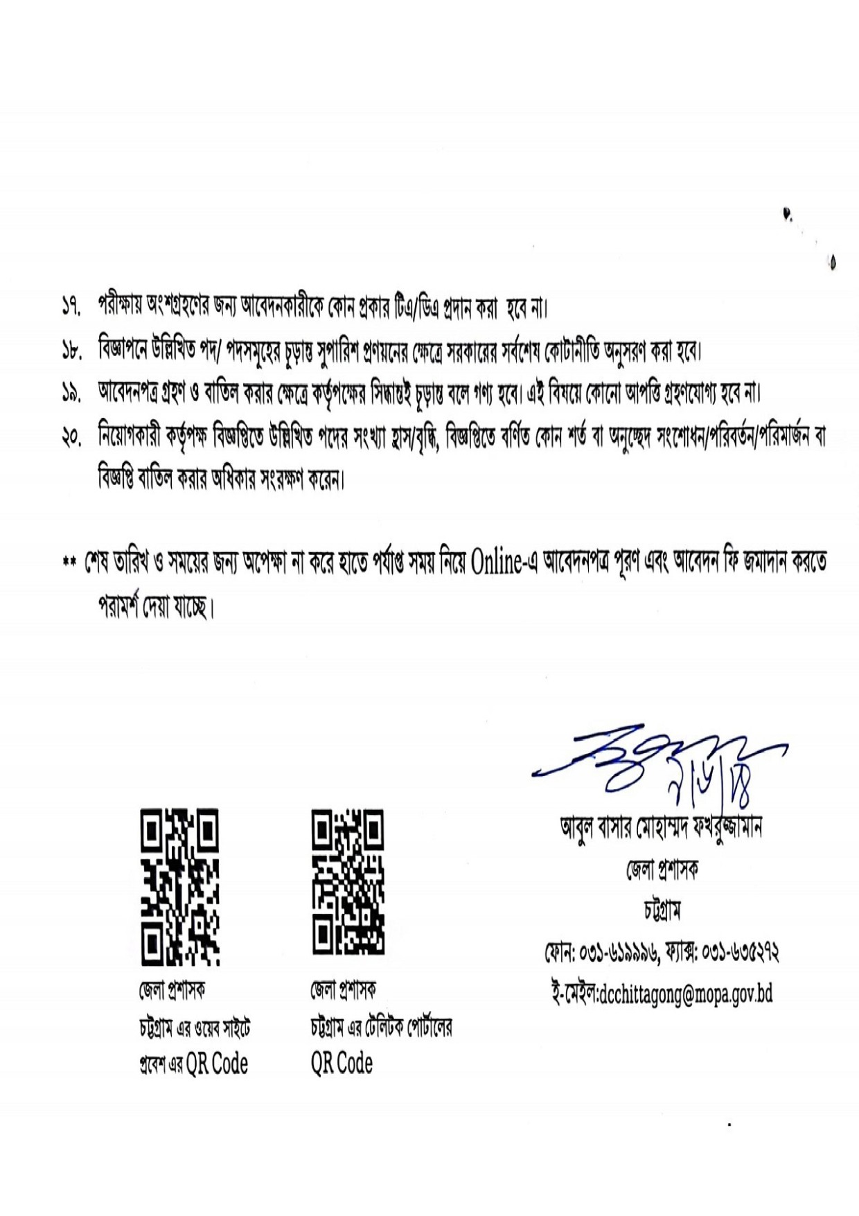 আবেদনকারী জেলাঃ চট্রগ্রাম জেলার প্রার্থীগণ আবেদন করতে পারবেন।