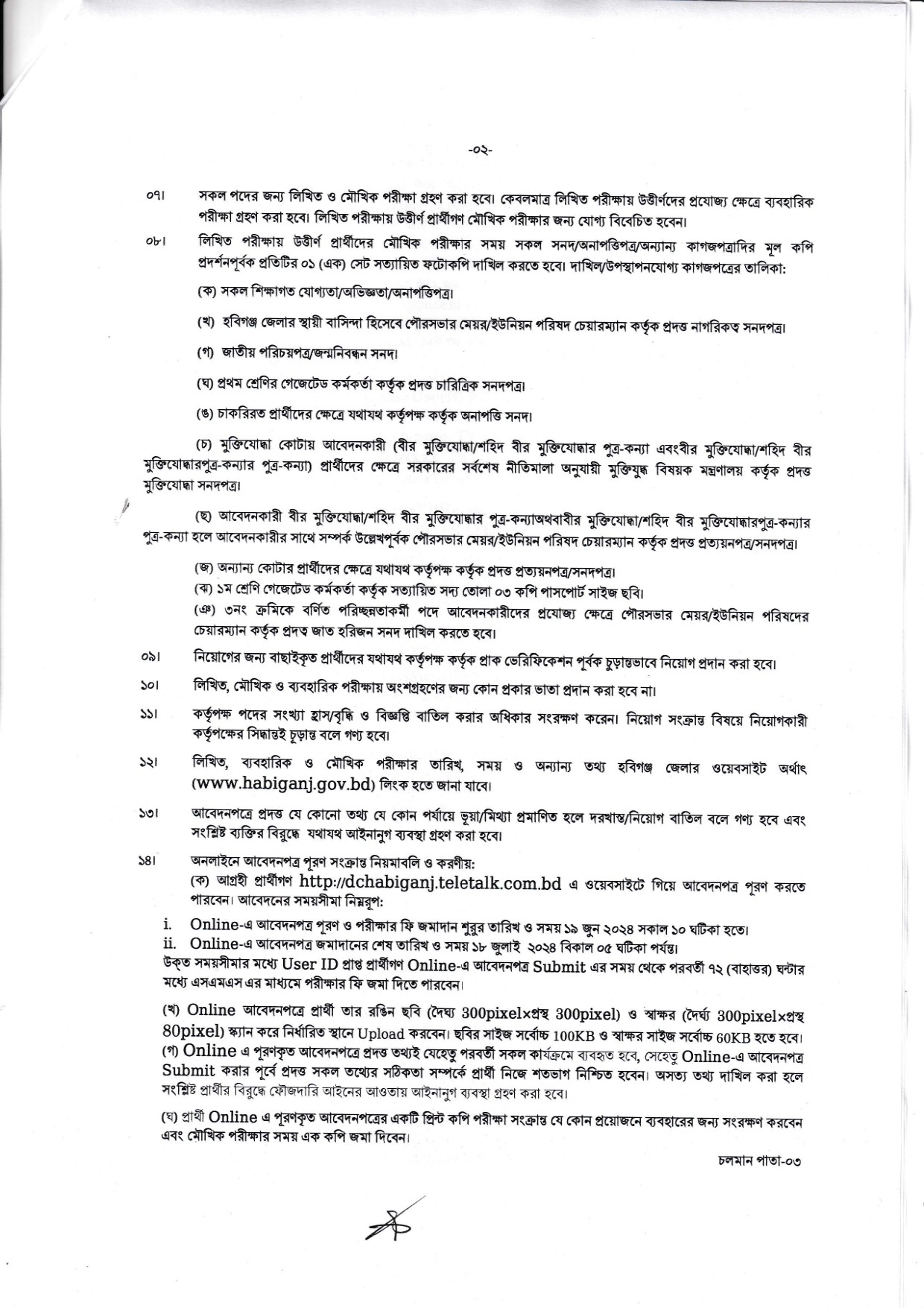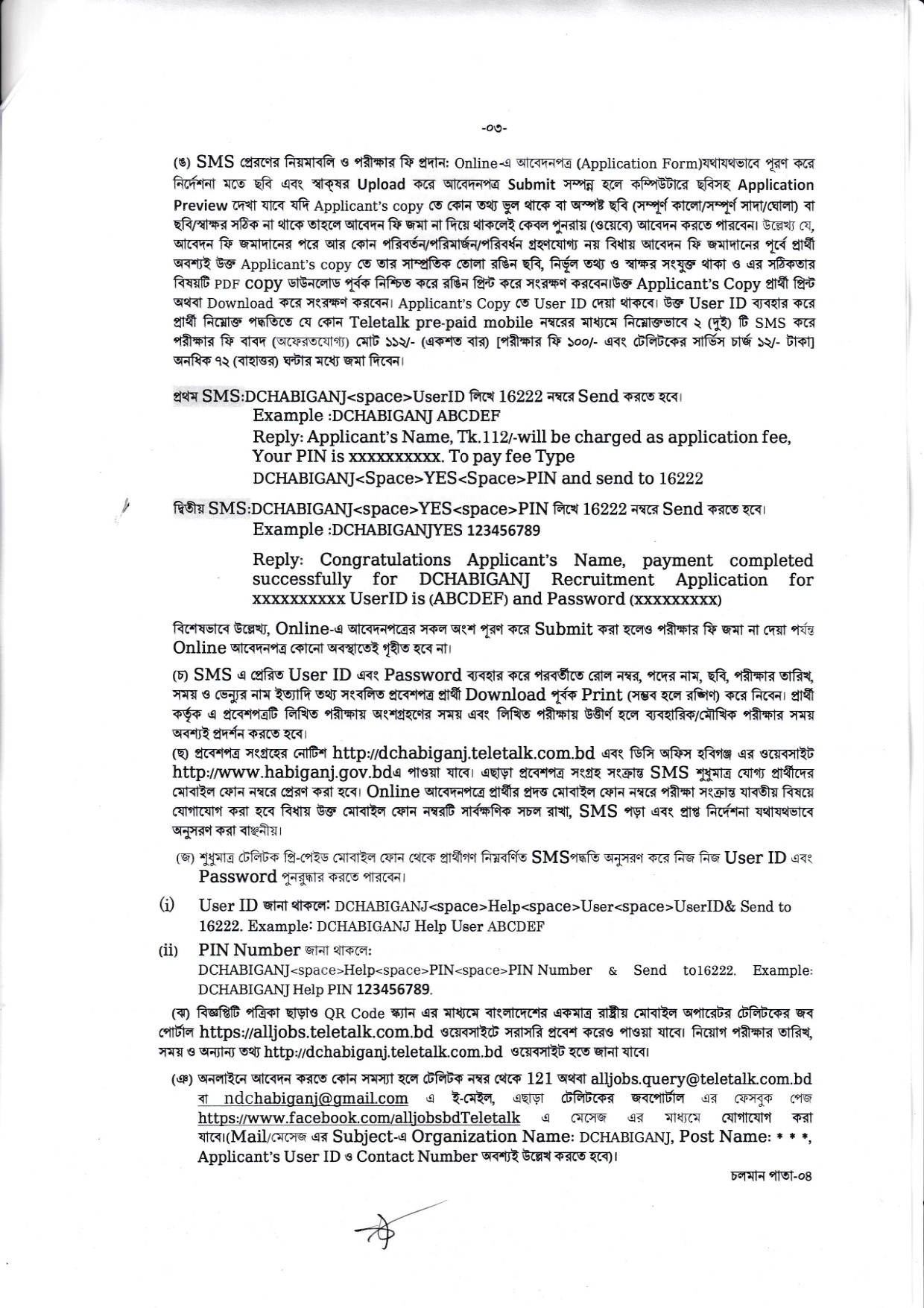 আবেদন প্রক্রিয়াঃ আগ্রহী প্রার্থীরা অনলাইনে http://dchabiganj.teletalk.com.bd/ ওয়েবসাইটে গিয়ে আবেদন পূরণ করতে পারবেন।