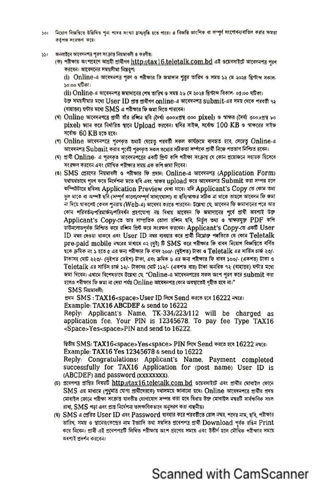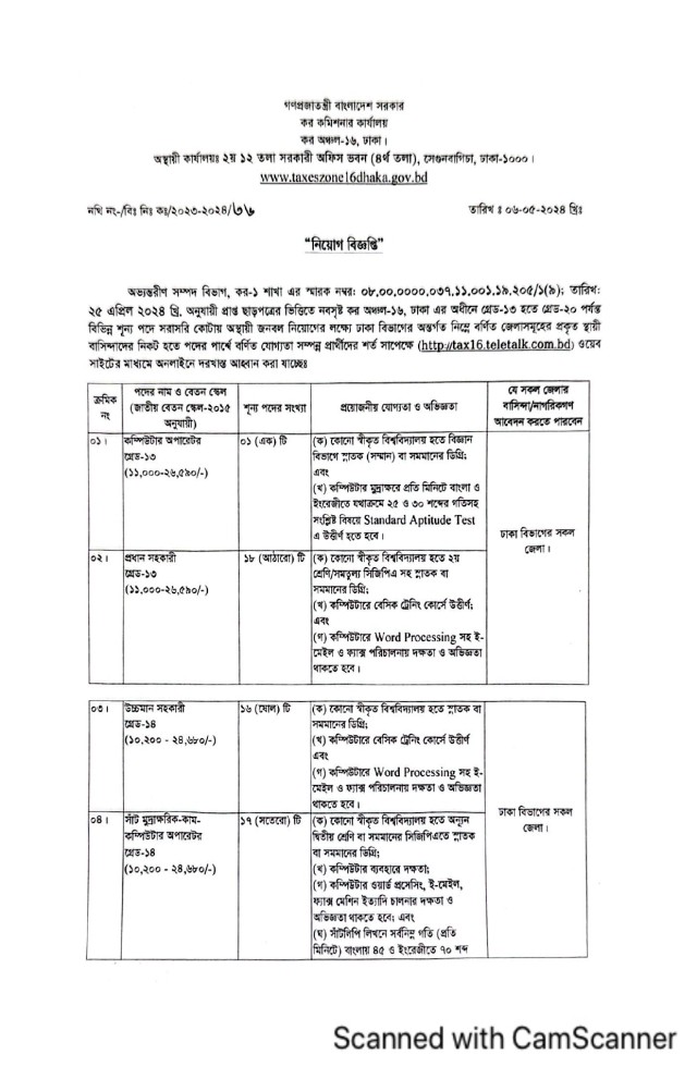 আবেদন প্রক্রিয়া: আগ্রহী প্রার্থীরা অনলাইনে http://tax16.teletalk.com.bd এই ওয়েবসাইটে গিয়ে আবেদনপত্র পূরণ করতে পারবেন।