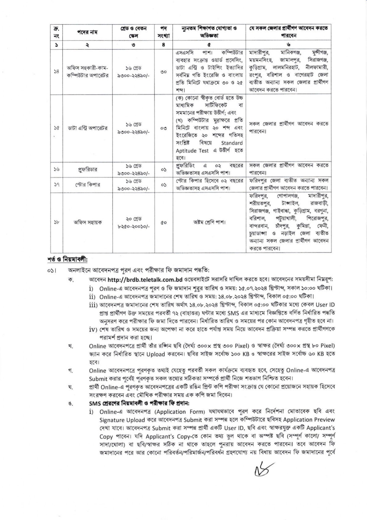 আবেদন প্রক্রিয়াঃ আগ্রহী প্রার্থীরা অনলাইনে http://brdb.teletalk.com.bd/brdb_2024/ এই ওয়েবসাইটে গিয়ে আবেদন পূরণ করতে পারবেন।