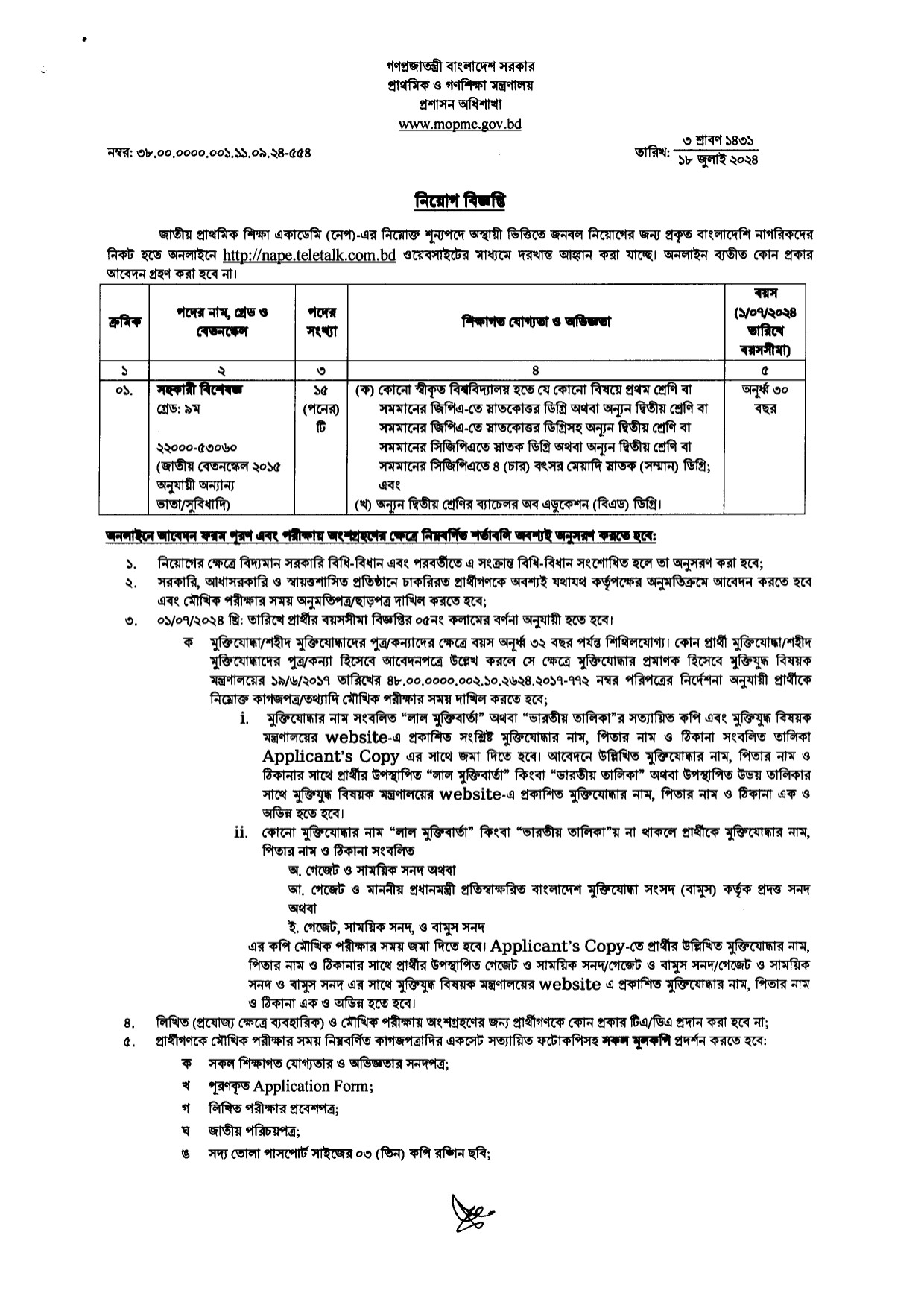 বিস্তারিত জানতে অফিসিয়াল বিজ্ঞপ্তিটি দেখুন।