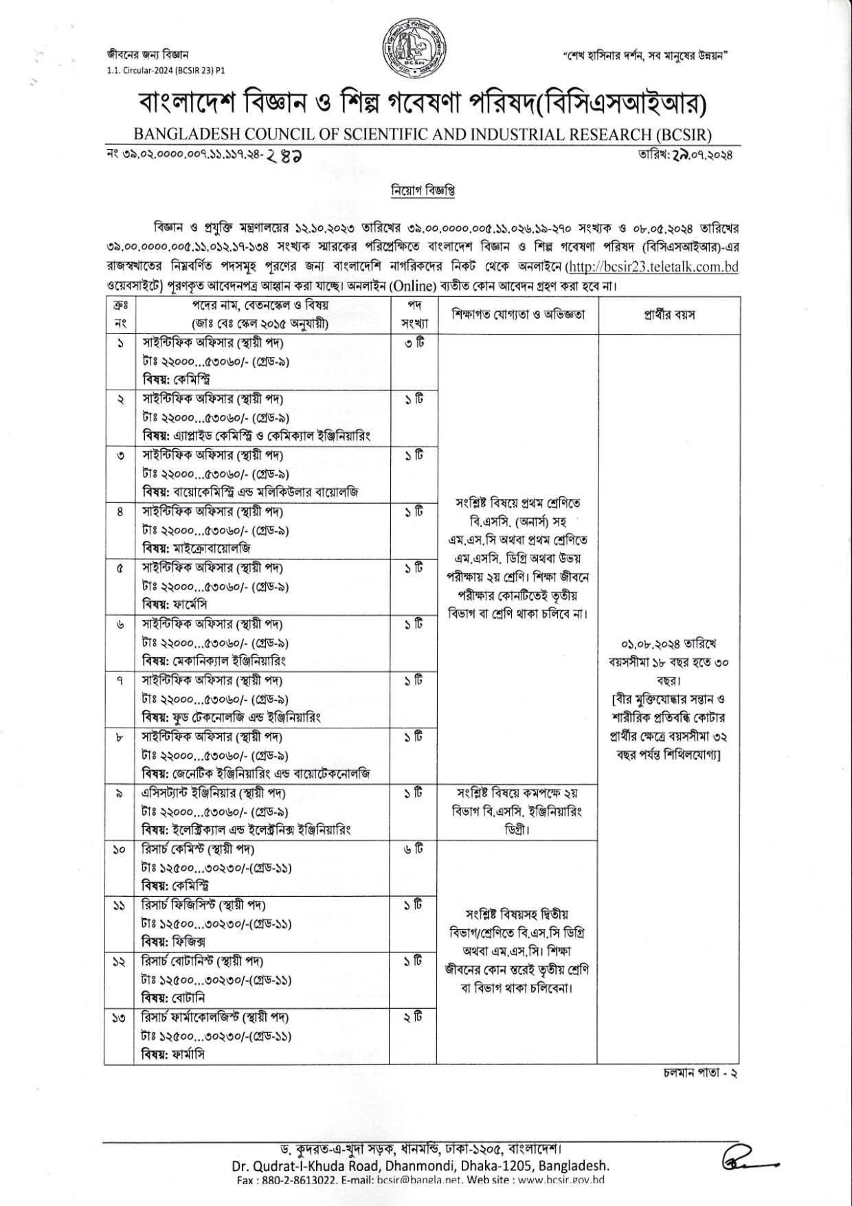 বিস্তারিত জানতে অফিসিয়াল বিজ্ঞপ্তিটি দেখুন।