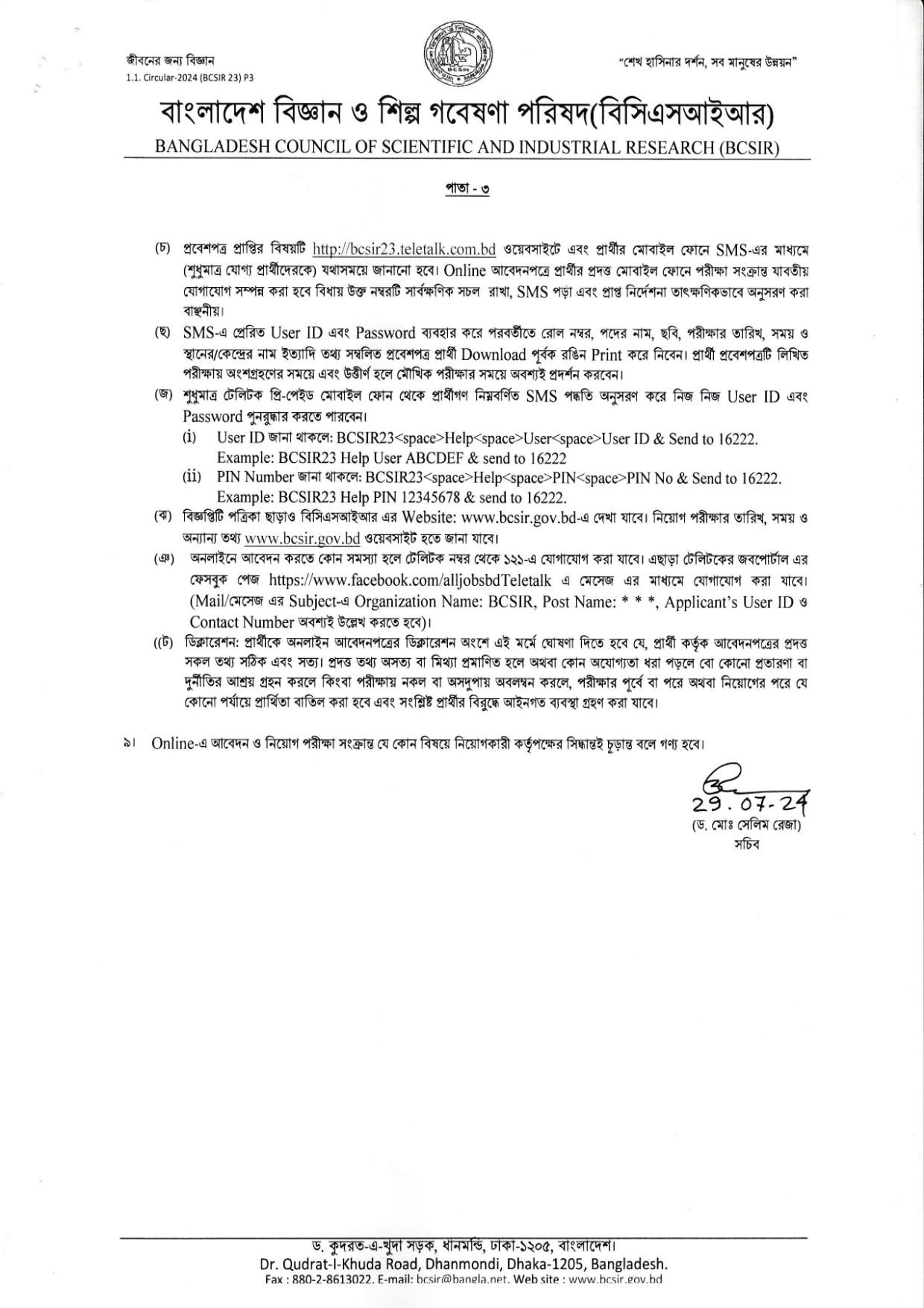 আবেদন প্রক্রিয়াঃ আগ্রহী প্রার্থীরা অনলাইনে http://bcsir23.teletalk.com.bd/ এই ওয়েবসাইটে গিয়ে আবেদন পূরণ করতে পারবেন।