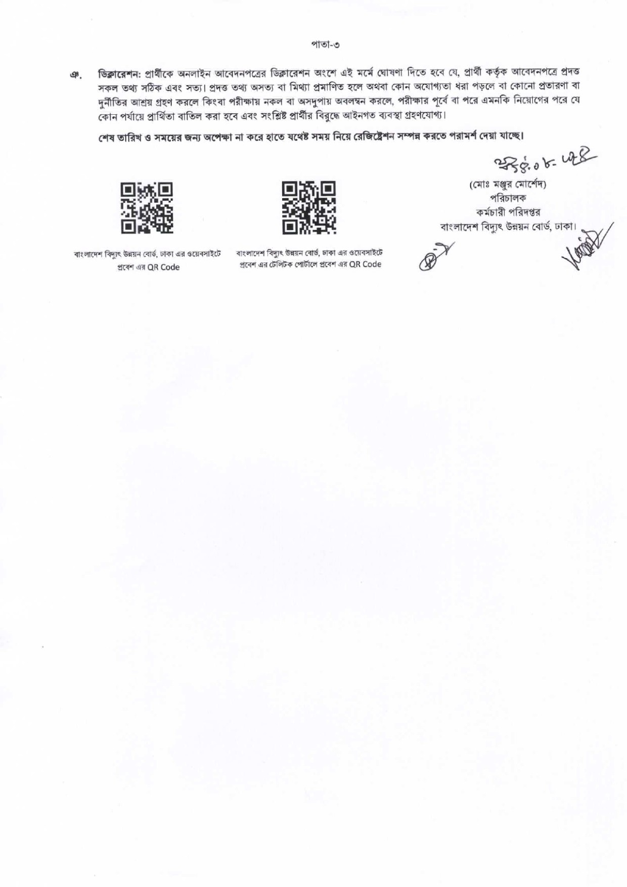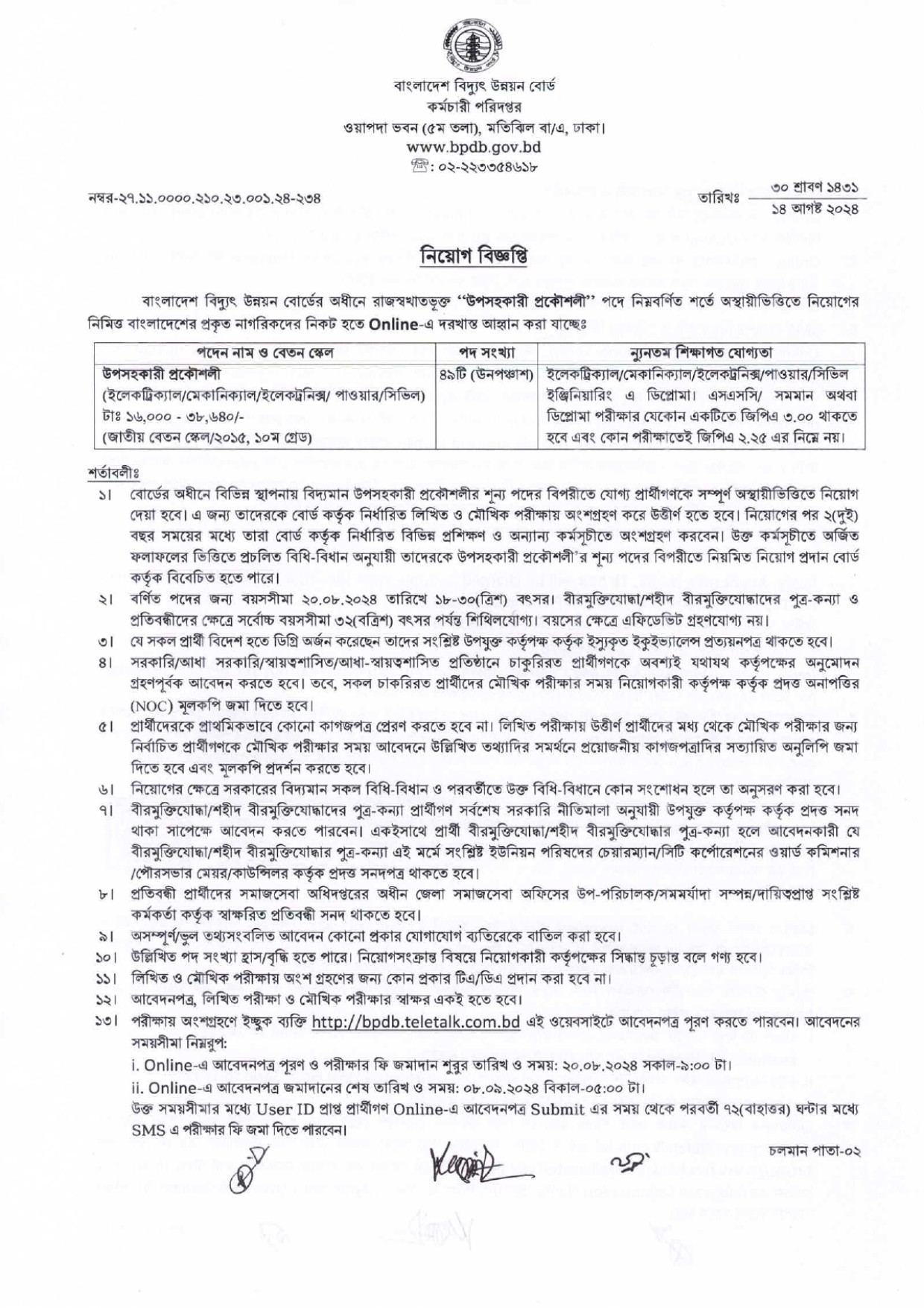 সুনির্দিষ্ট শিক্ষাগত যোগ্যতাঃ ইলেকট্রিক্যাল/মেকানিক্যাল/সিভিল/ইলেকট্রনিক্স/পাওয়ার প্রকৌশলে ডিপ্লোমা পাশ হতে হবে এবং ডিপ্লোমা পরীক্ষায় যেকোন একটিতে জিপিএ ৩.০০ থাকতে হবে। এবং কোন পরীক্ষাতে জিপিএ ২.২৫ এর নিচে গ্রহণযোগ্য নয়।