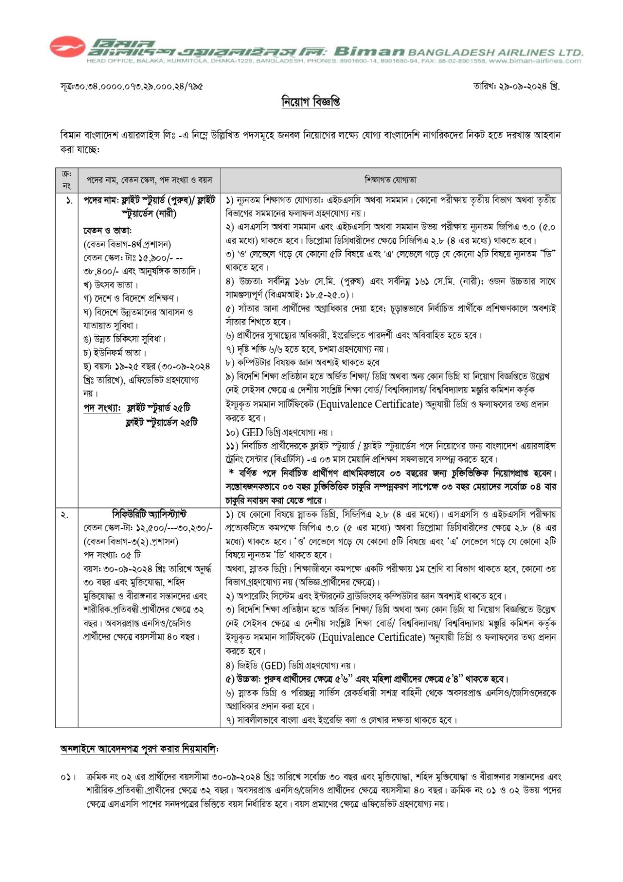 পদ সংখ্যা: ফ্লাইট স্টুয়ার্ড ২৫টি
