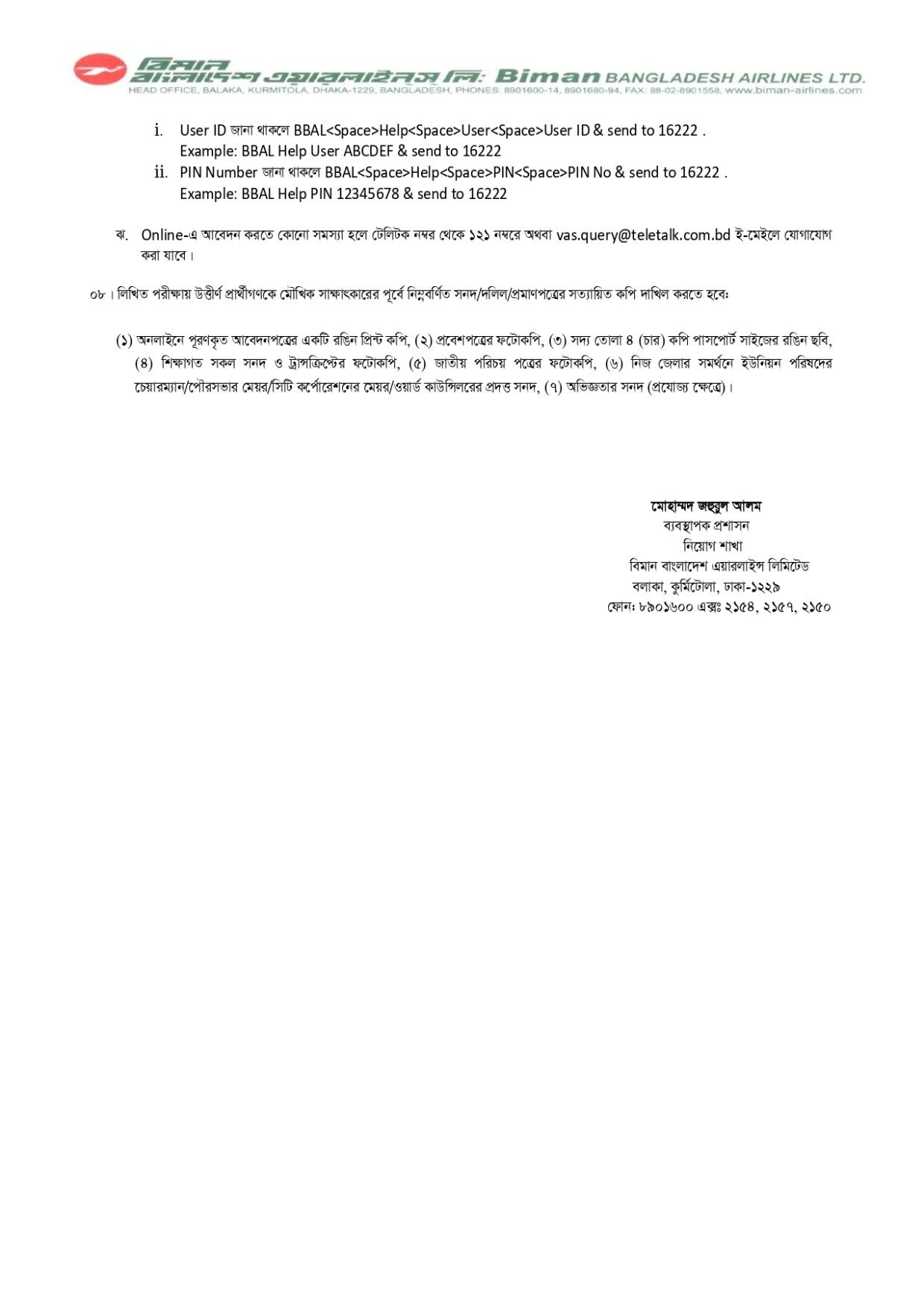 ১১) নির্বাচিত প্রার্থীদেরকে ফ্লাইট স্টুয়ার্ড/ ফ্লাইট স্টুয়ার্ডেস পদে নিয়োগের জন্য বাংলাদেশ এয়ারলাইন্স ট্রেনিং সেন্টার (বিএটিসি)-এ ০৩ মাস মেয়াদি প্রশিক্ষণ সফলভাবে সম্পন্ন করতে হবে।