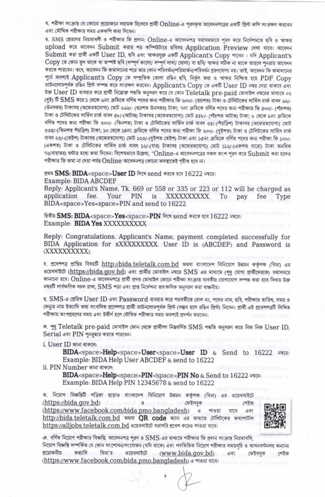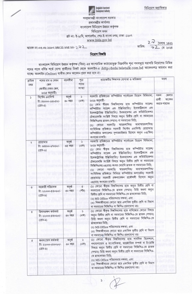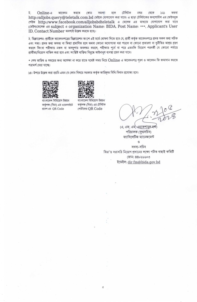আবেদন প্রক্রিয়া: আগ্রহী প্রার্থীরা অনলাইনে http://bida.teletalk.com.bd/ এই ওয়েবসাইটে গিয়ে আবেদনপত্র পূরণ করতে পারবেন।