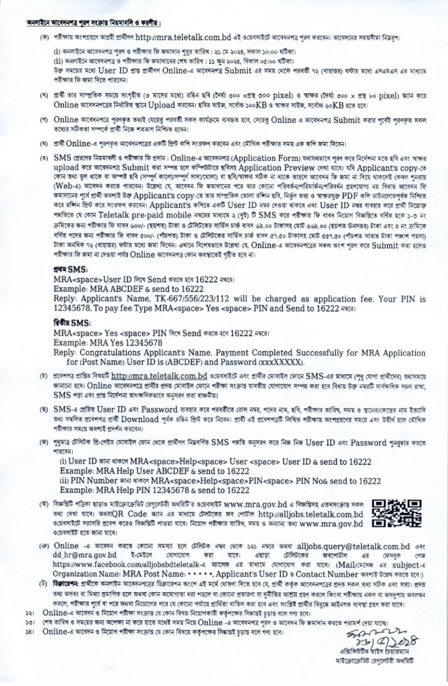আবেদন প্রক্রিয়া: আগ্রহী প্রার্থীরা অনলাইনে http://mra.teletalk.com.bd/mra_2024/ এই ওয়েবসাইটে গিয়ে আবেদনপত্র পূরণ করতে পারবেন।